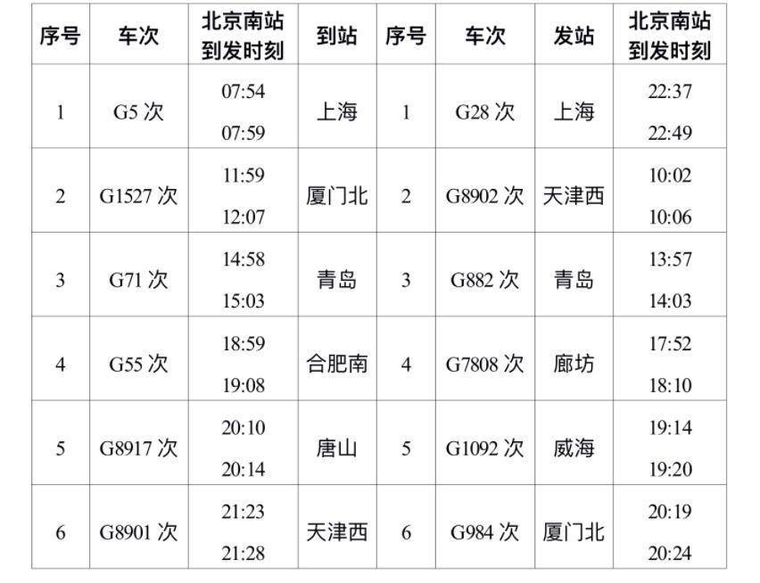 此外,需要提醒的是,为了充分发挥北京地区路网优势,6对京沪高铁动车组列车始发终到站由北京南站变更为北京站,为旅客从北京出发提供更多选择,提升区域服务质量。